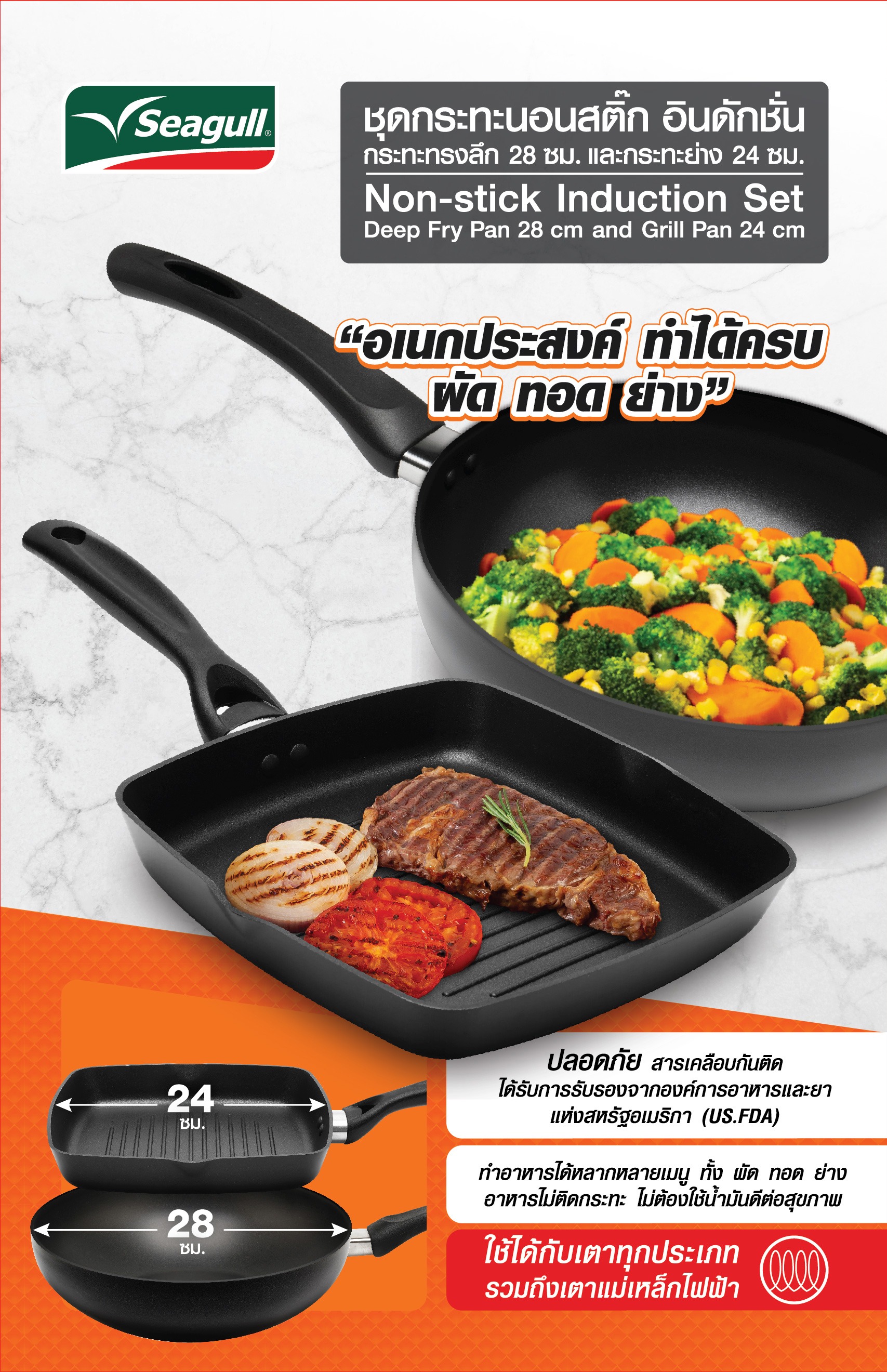 Seagull ชุดกระทะนอนสติ๊ก อินดักชั่น กระทะทรงลึก 28 ซม. และกระทะย่าง 24 ซม. รหัส 110001088