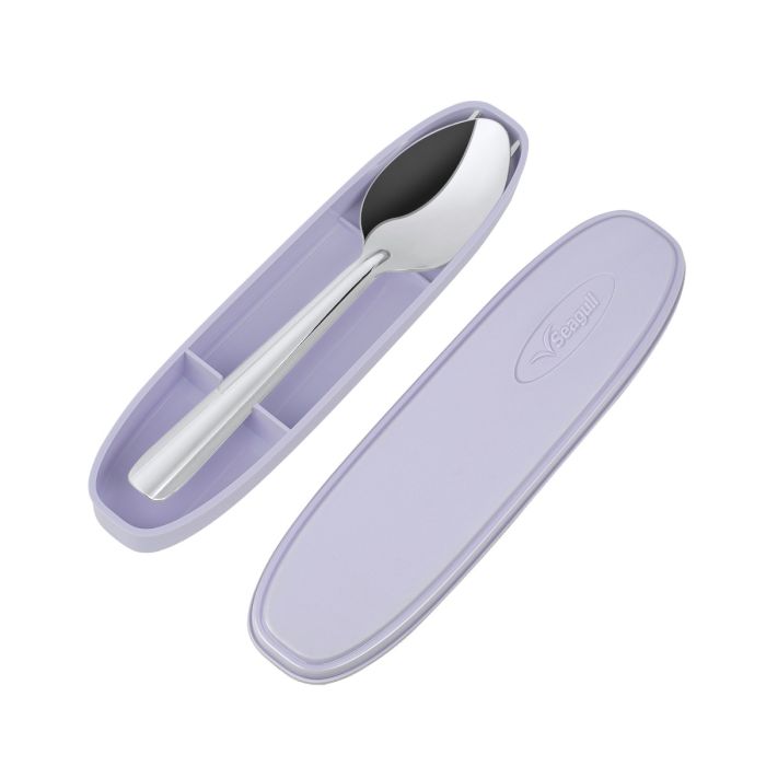 ชุดช้อนส้อมพร้อมกล่องพลาสติก ข้าวไทย (สีม่วง) จัดเก็บในกล่องที่ปิดสนิท สะอาด ถูกสุขลักษณะ ขนาดกระทัดรัด น้ำหนักเบา พกพาสะดวก ช้อนส้อมผลิตจากสเตนเลสสตีลคุณภาพดีทั้งชิ้น ทนทาน ปลอดภัยต่อสุขภาพ